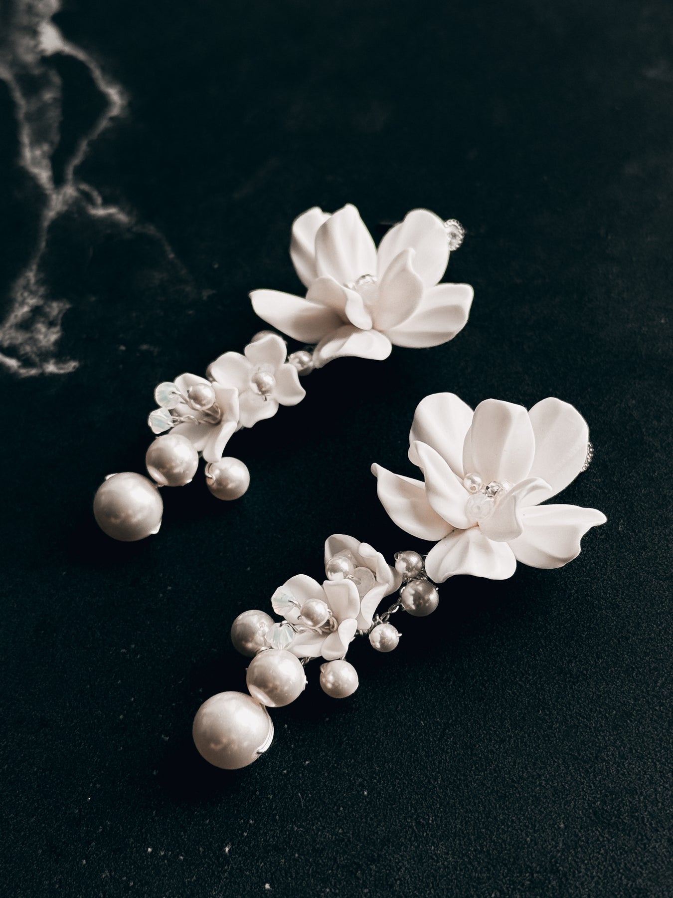 ** Each pair of earrings and handmade flowers have unique shapes and sizes. They will not look exactly same as the demo photos.